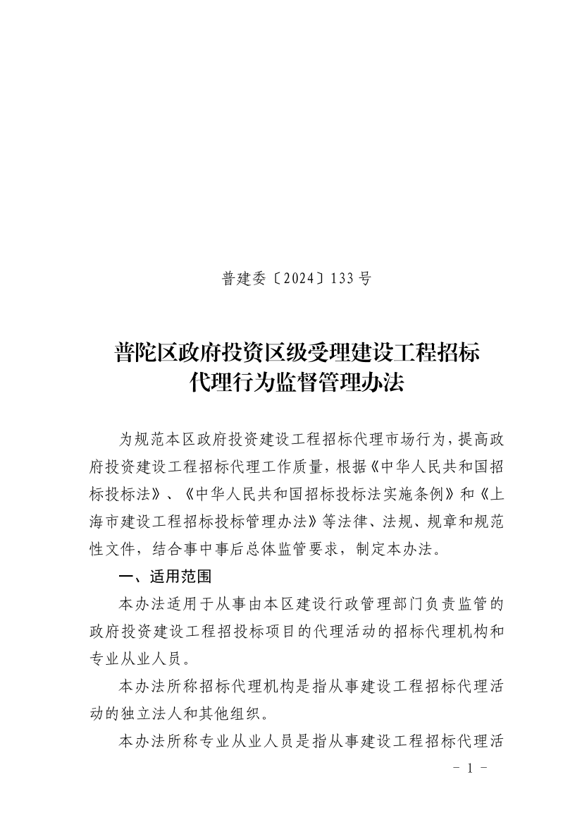 本办法适用于从事由本区建设行政管理部门负责监管的政府投资建设工程招投标项目的代理活动的招标代理机构和专业从业人员。