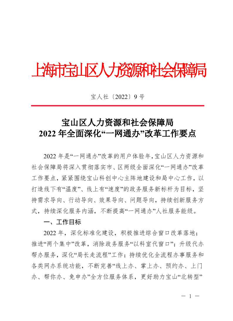 1.2022年宝山区人社局深化“一网通办”改革工作任务分工表