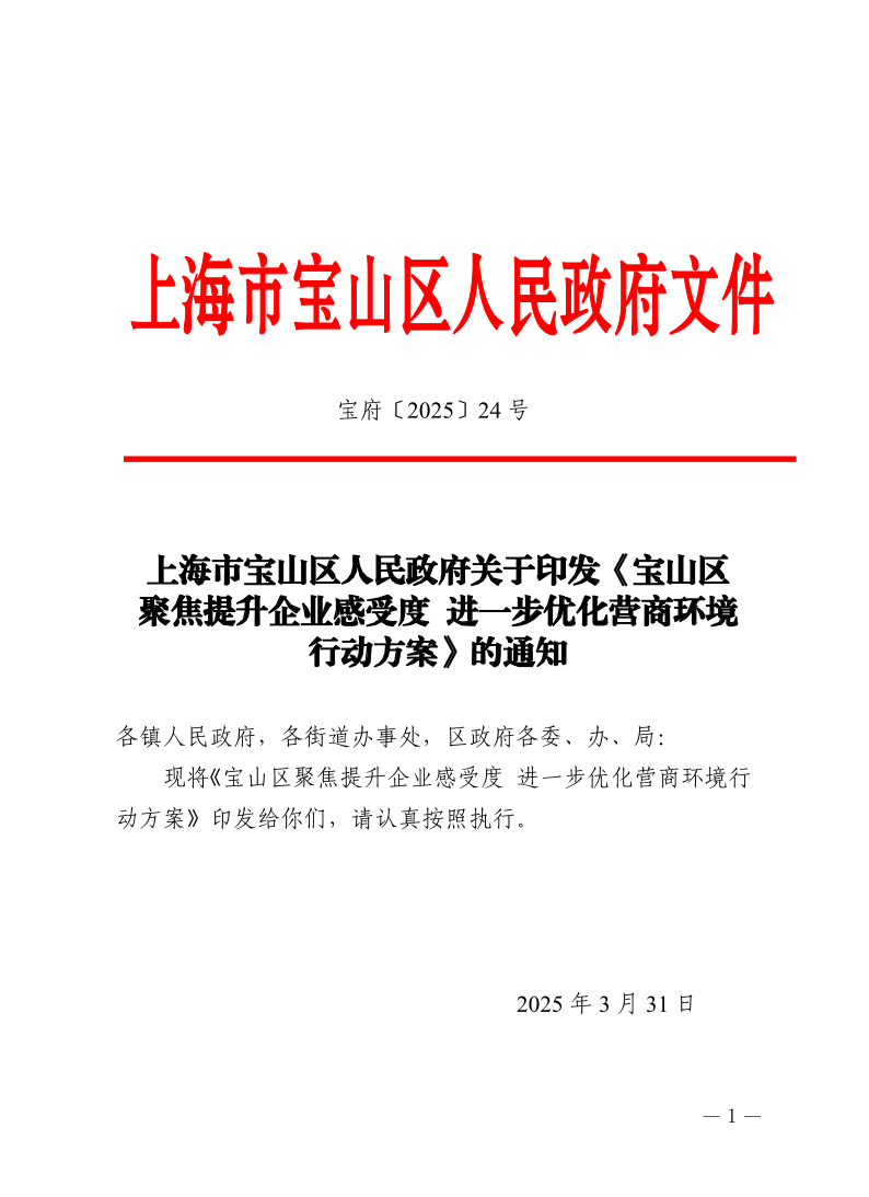 宝山区聚焦提升企业感受度进一步优化营商环境行动方案