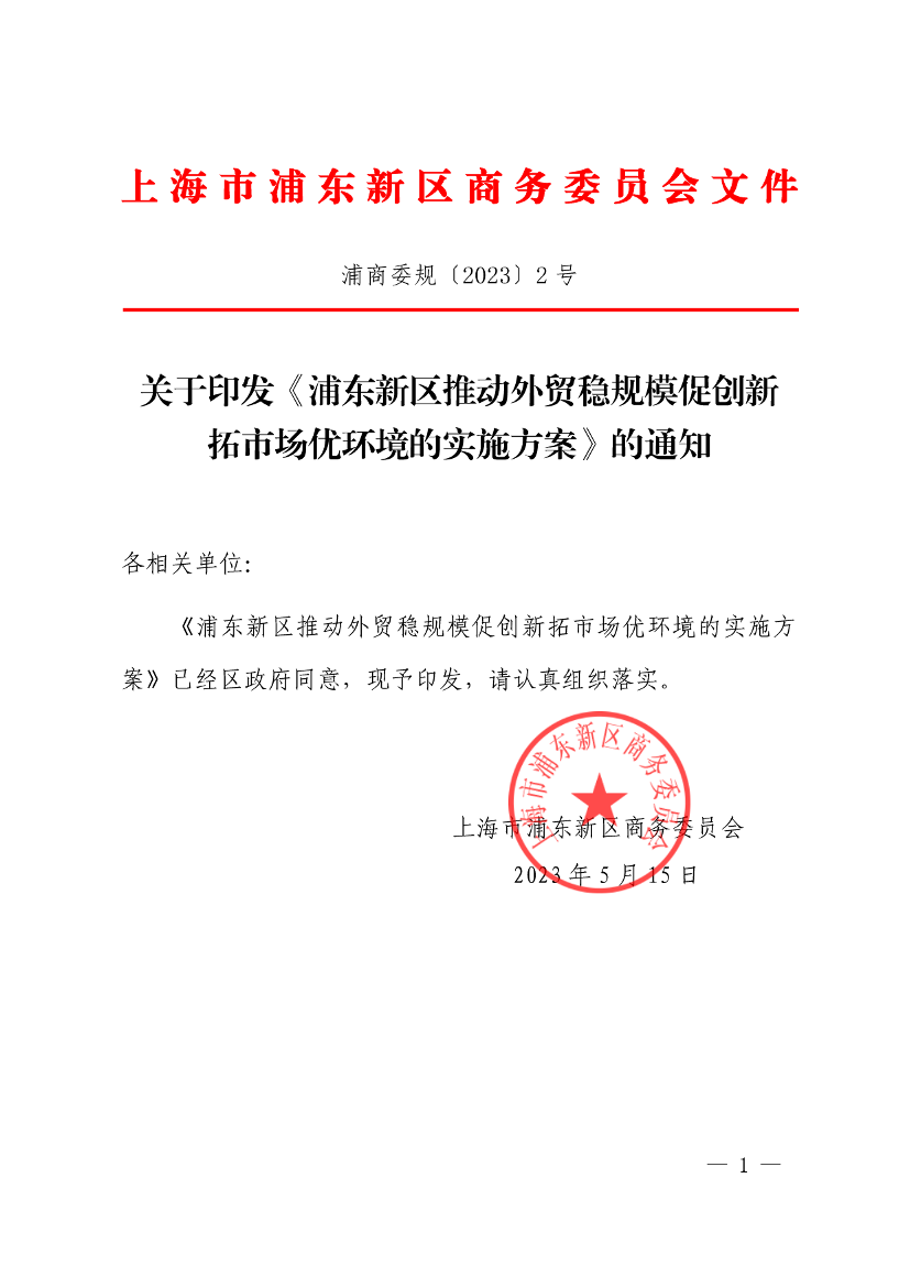 关于印发《浦东新区推动外贸稳规模促创新拓市场优环境的实施方案》的通知