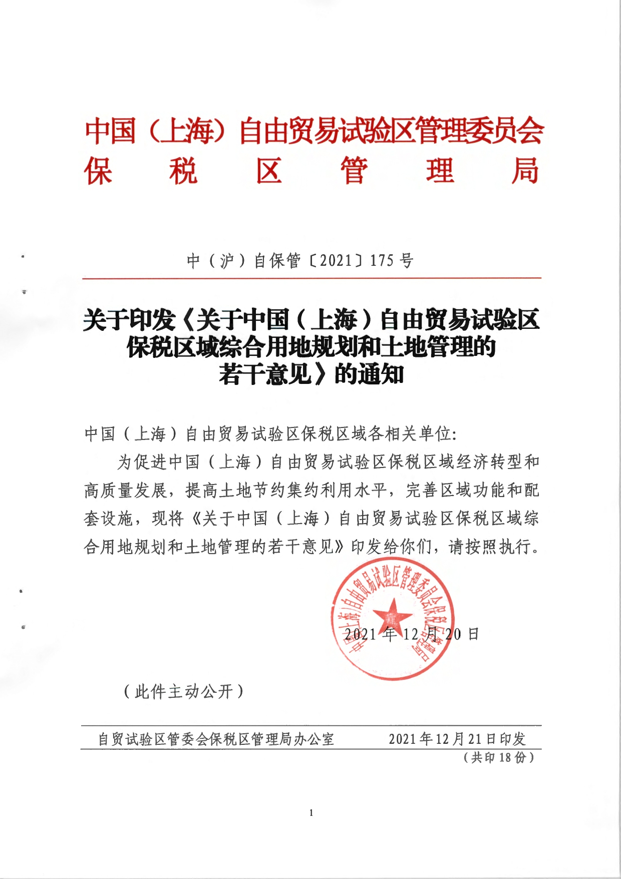 关于印发《关于中国(上海)自由贸易试验区保税区域综合用地规划和土地管理的若干意见》的通知.pdf