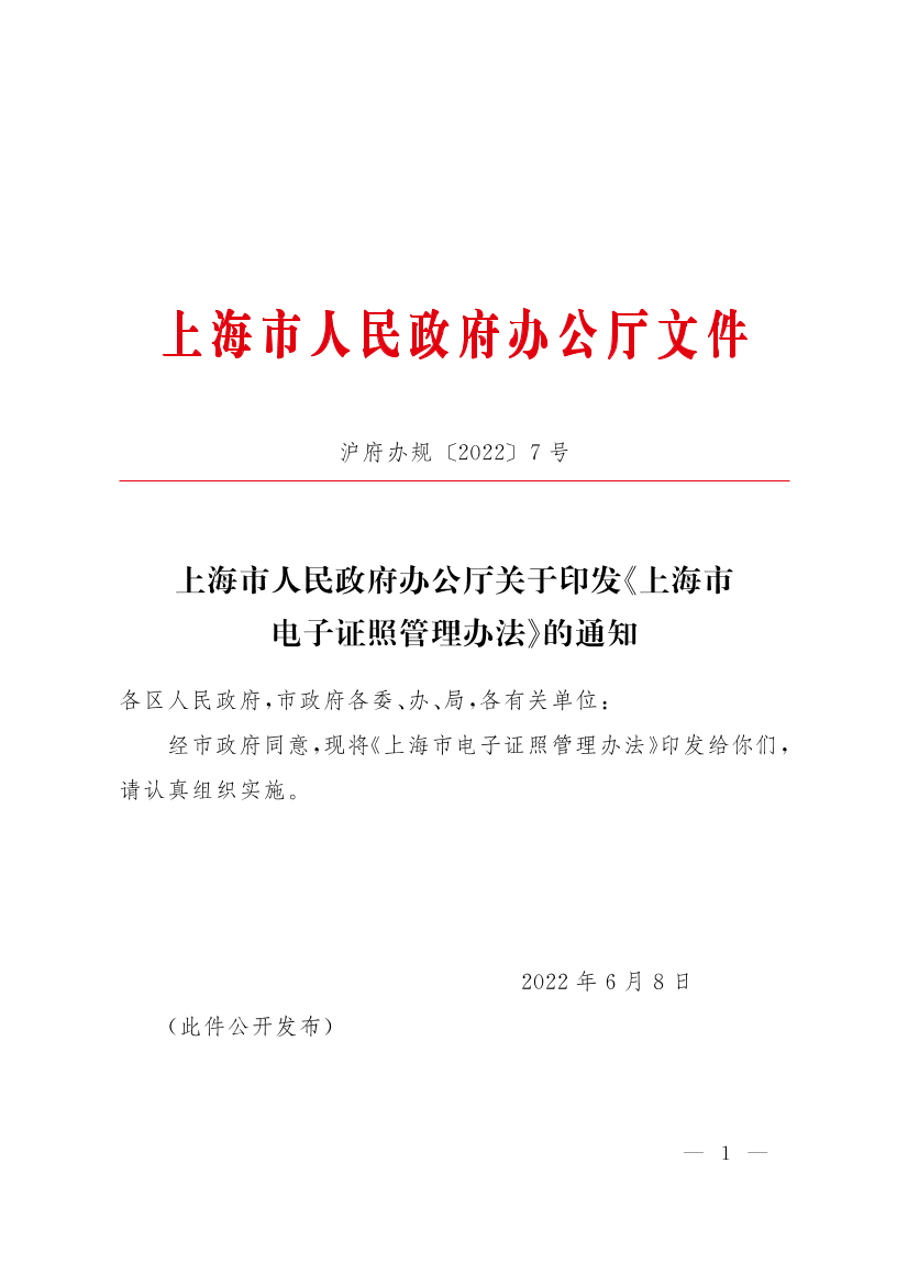 上海市人民政府办公厅关于印发《上海市电子证照管理办法》的通知