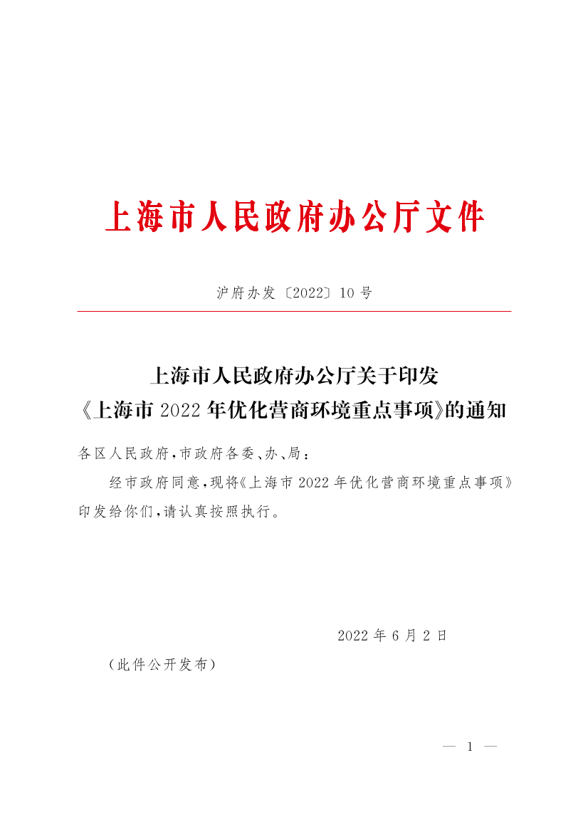 关于印发《上海市2022年优化营商环境重点事项》的通知