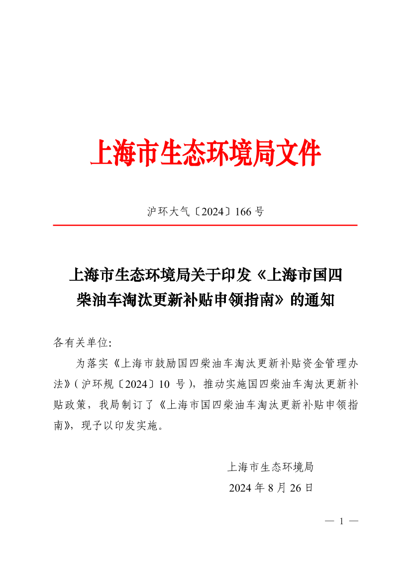 根据《上海市鼓励国四柴油车淘汰更新补贴资金管理办法》(沪环规〔2024〕10号)要求,为做好国四柴油车淘汰更新补贴申领发放工作,制定本指南。