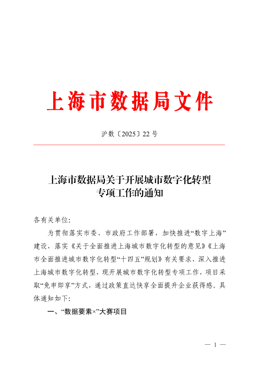 上海市数据局关于开展城市数字化转型专项工作的通知