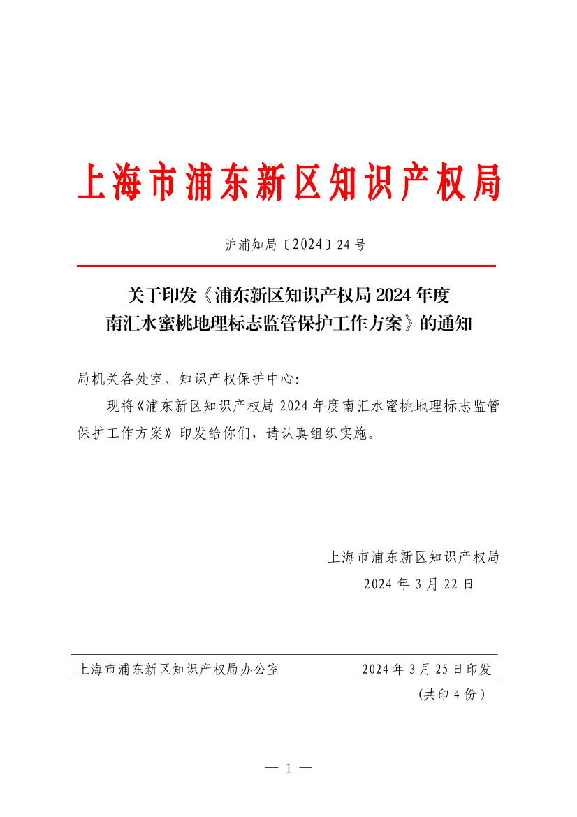浦东新区知识产权局2024年度南汇水蜜桃地理标志监管保护工作方案