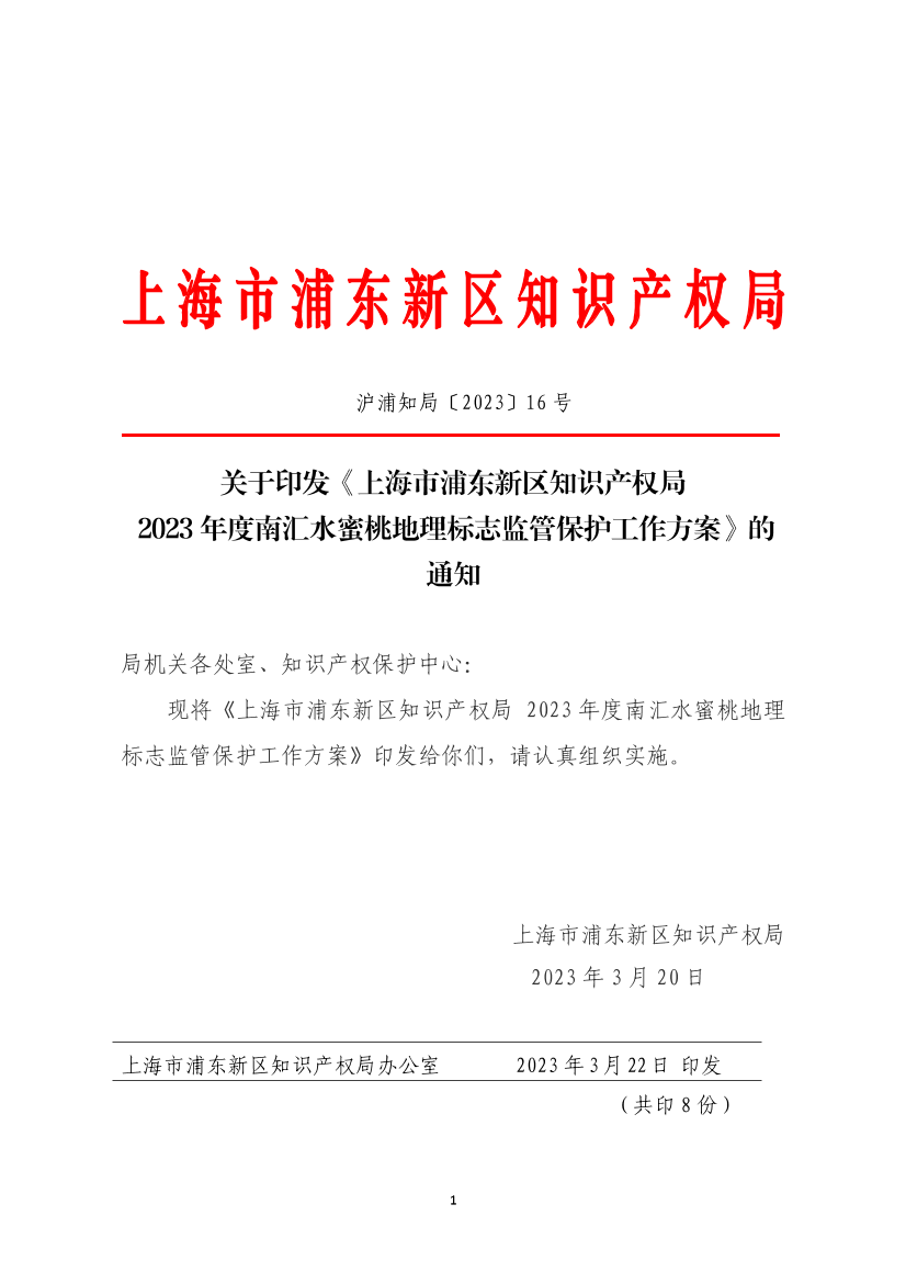 上海市浦东新区知识产权局 2023年度南汇水蜜桃地理标志监管保护工作方案