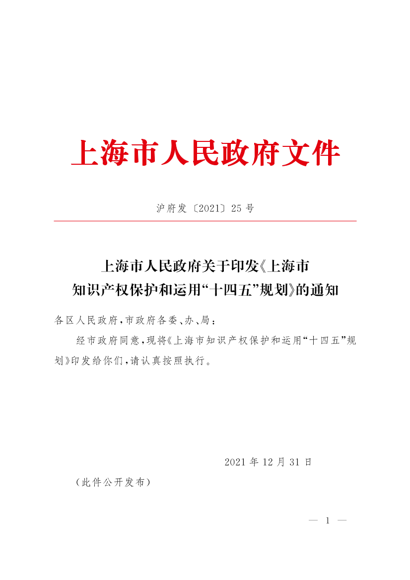 上海市人民政府关于印发《上海市知识产权保护和运用“十四五”规划》的通知