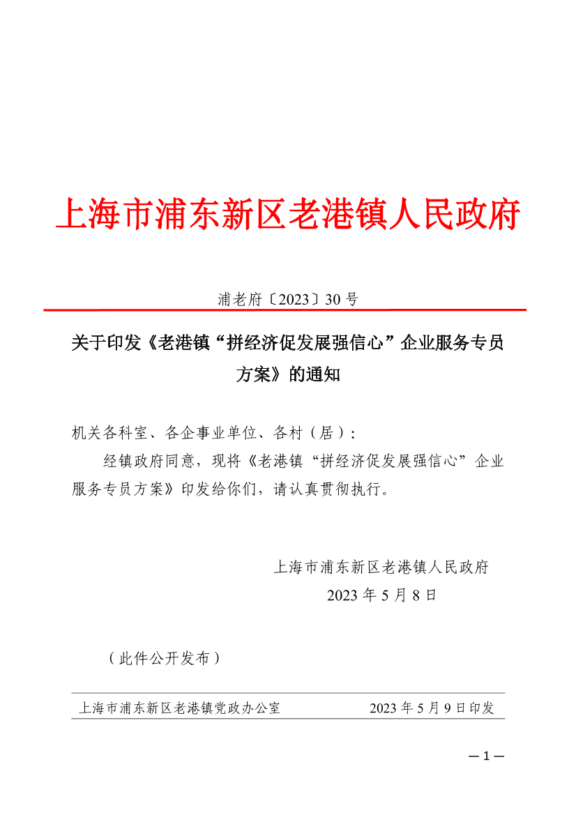 经镇政府同意,现将《老港镇“拼经济促发展强信心”企业服务专员方案》印发给你们,请认真贯彻执行。
