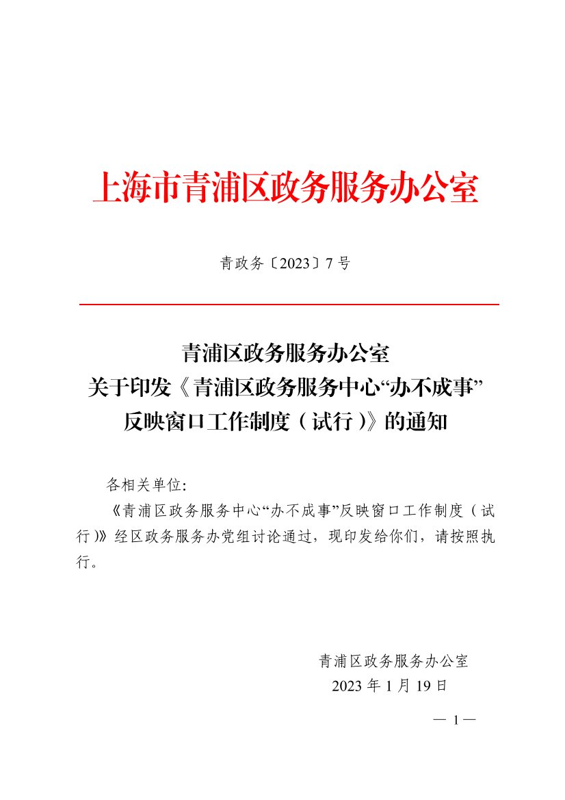 《青浦区政务服务中心“办不成事”反映窗口工作制度(试行)》经区政务服务办党组讨论通过,现印发给你们,请按照执行。