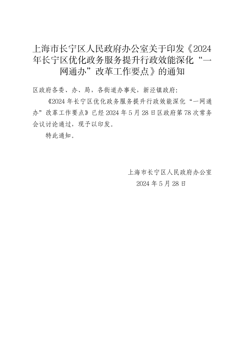 上海市长宁区人民政府办公室关于印发《2024年长宁区优化政务服务提升行政效能深化“一网通办”改革工作要点》的通知