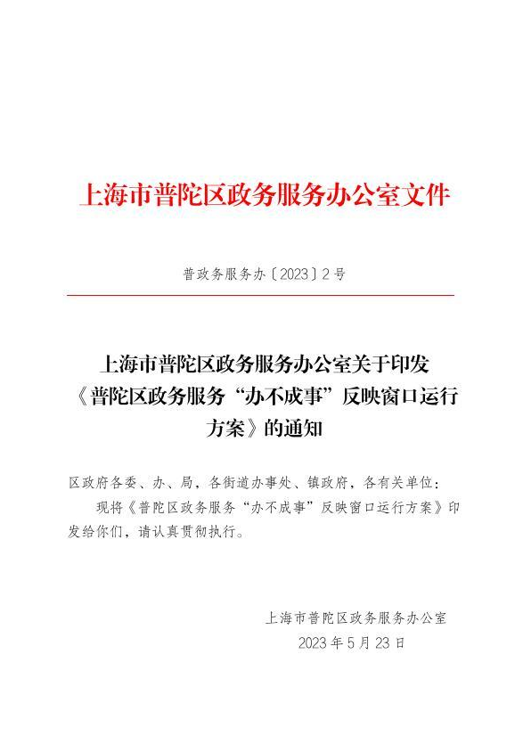现将《普陀区政务服务“办不成事”反映窗口运行方案》印发给你们,请认真贯彻执行。