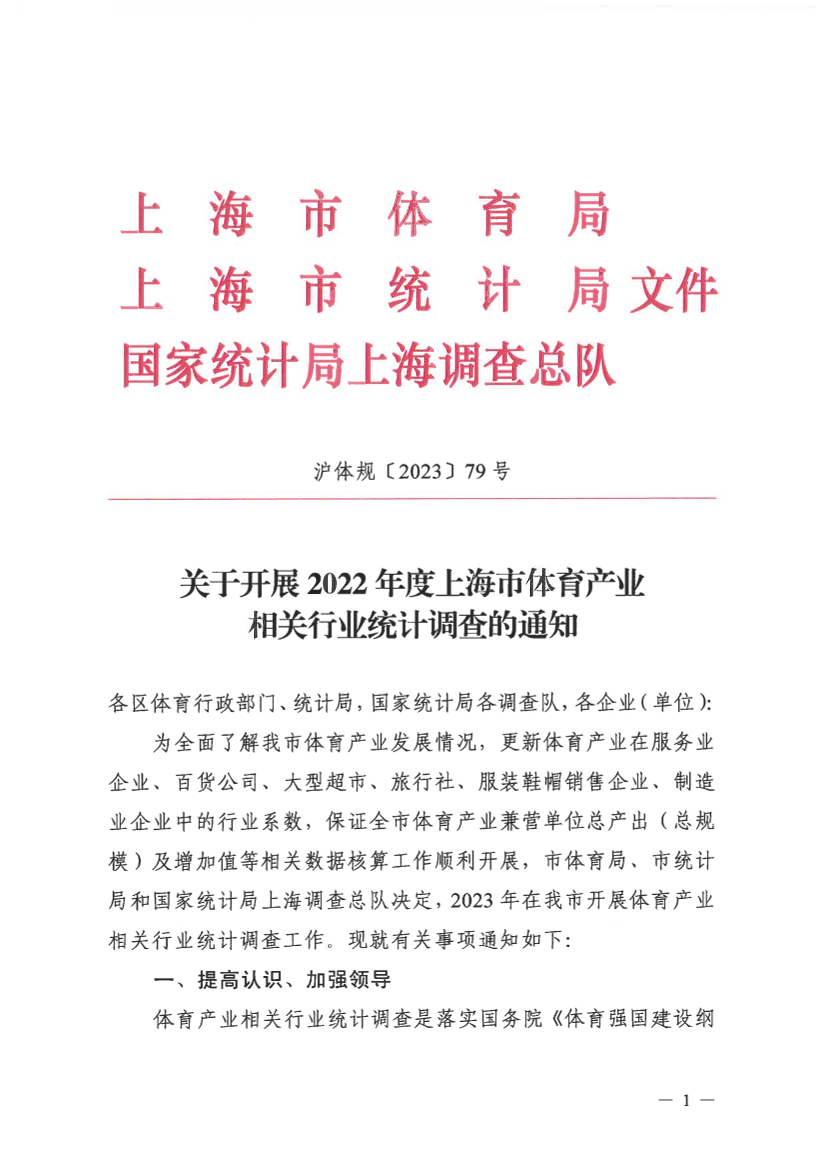 关于开展2022年度上海市体育产业相关行业统计调查的通知