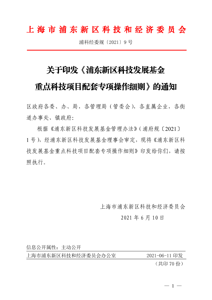 根据《浦东新区科技发展基金管理办法》(浦府规〔2021〕1号),经浦东新区科技发展基金理事会审定,现将《浦东新区科技发展基金重点科技项目配套专项操作细则》印发给你们,请按照执行。