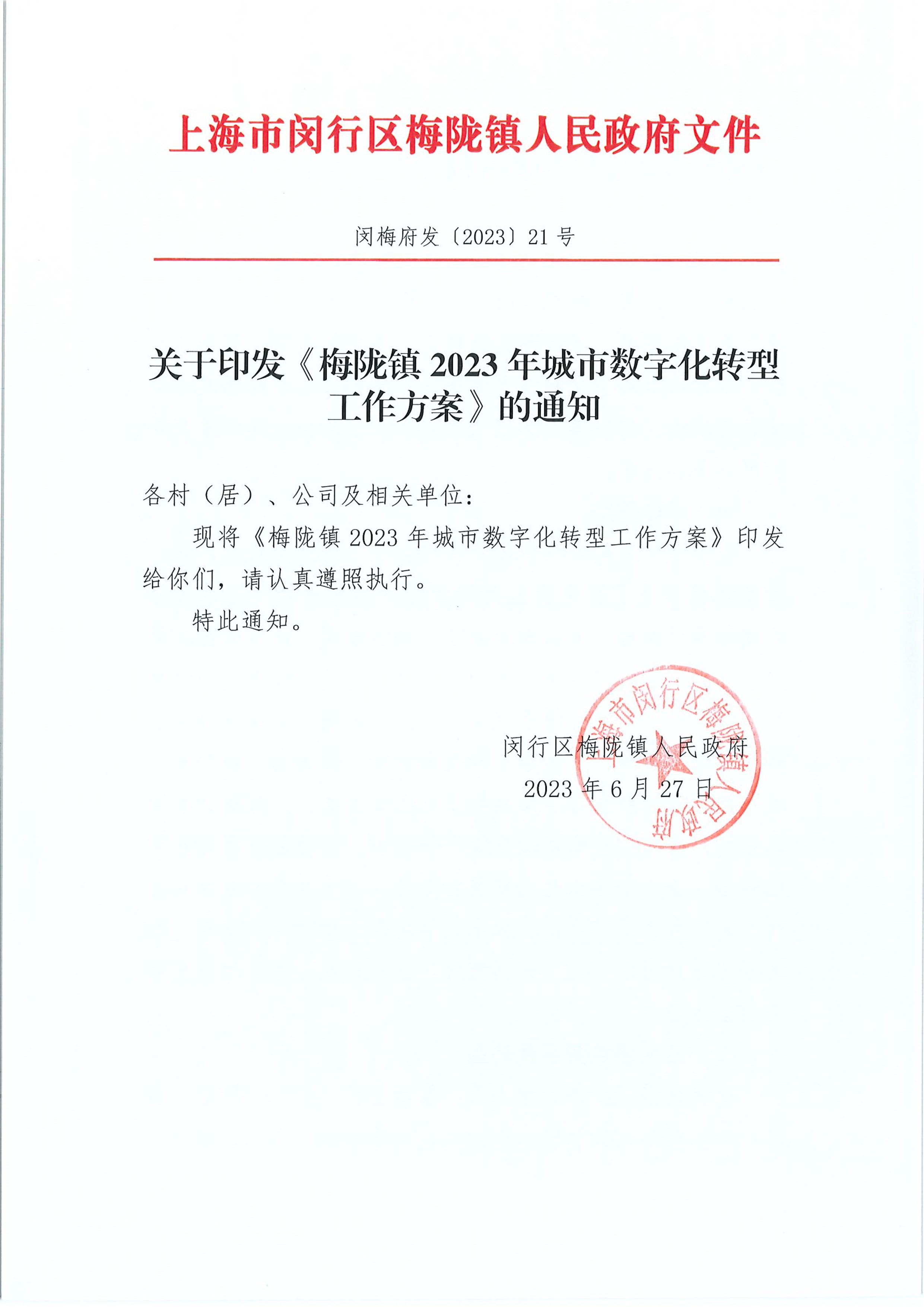 现将《梅陇镇2023年城市数字化转型工作方案》印发给你们,请认真遵照执行。