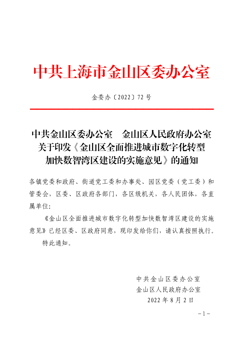金山区全面推进城市数字化转型加快数智湾区建设的实施意见