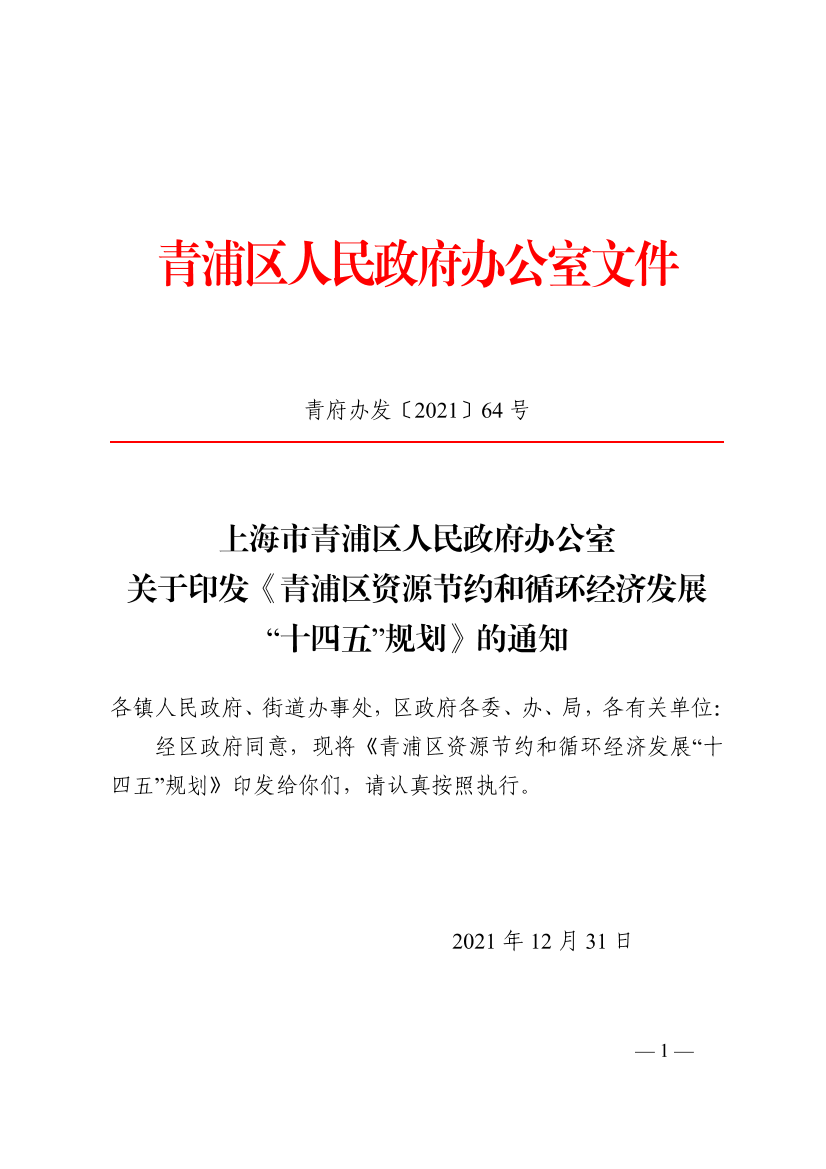 经区政府同意,现将《青浦区资源节约和循环经济发展“十四五”规划》印发给你们,请认真按照执行。