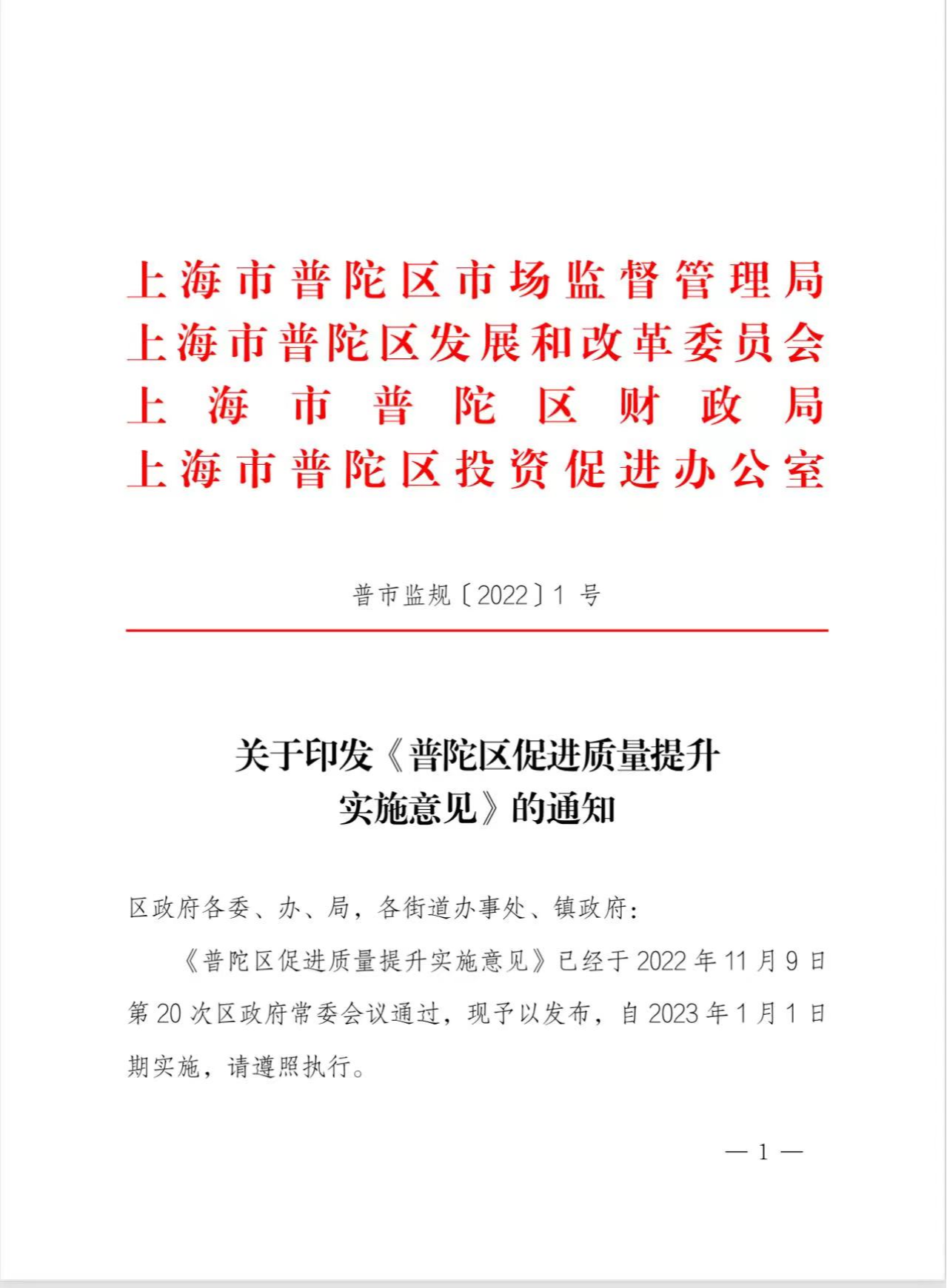(三)本意见自2023年1月1日起施行,有效期至2024年12月31日。《普陀区促进质量提升实施意见》(普市监规〔2021〕1号)同时废止。