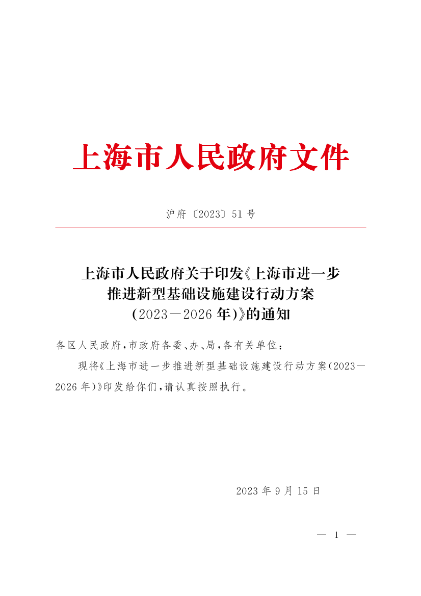 上海市人民政府关于印发《上海市进一步推进新型基础设施建设行动方案(2023-2026年)》的通知
