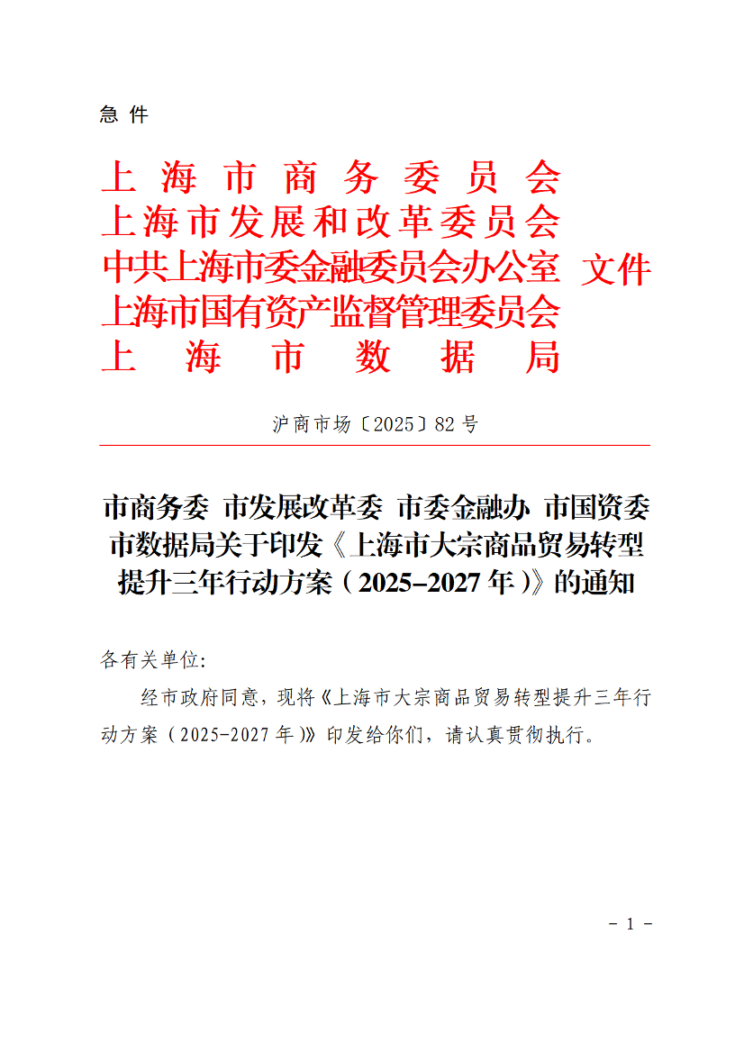 经市政府同意,现将《上海市大宗商品贸易转型提升三年行动方案(2025-2027年)》印发给你们,请认真贯彻执行。